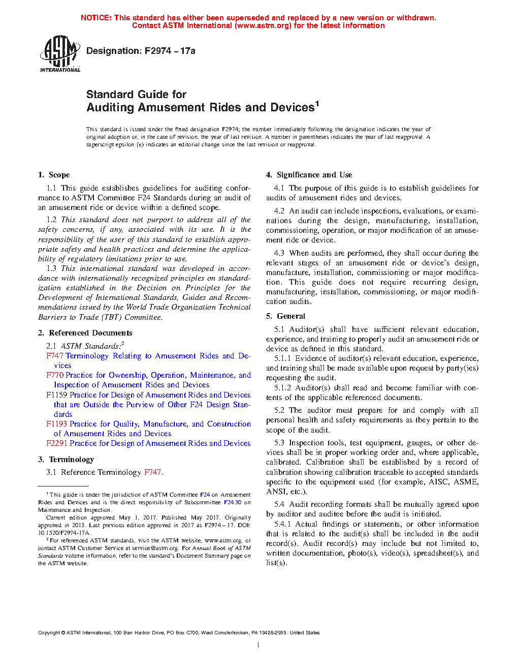 1.2.1 Auditors sufficient relevant education, training, technical knowledge, certifications as appropriate, and experience to properly audit an amusement ride or device in accordance with subsection 5.1 of this standard.