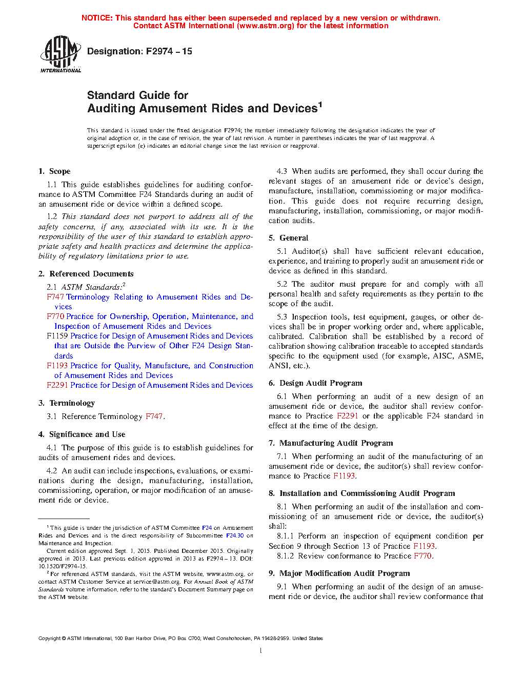 4.3 When audits are performed, they shall occur during the relevant stages of an amusement ride or device’s design, manufacture, installation, commissioning or major modification. This practice does not require recurring design, manufacturing, installation, commissioning, or major modification audits.