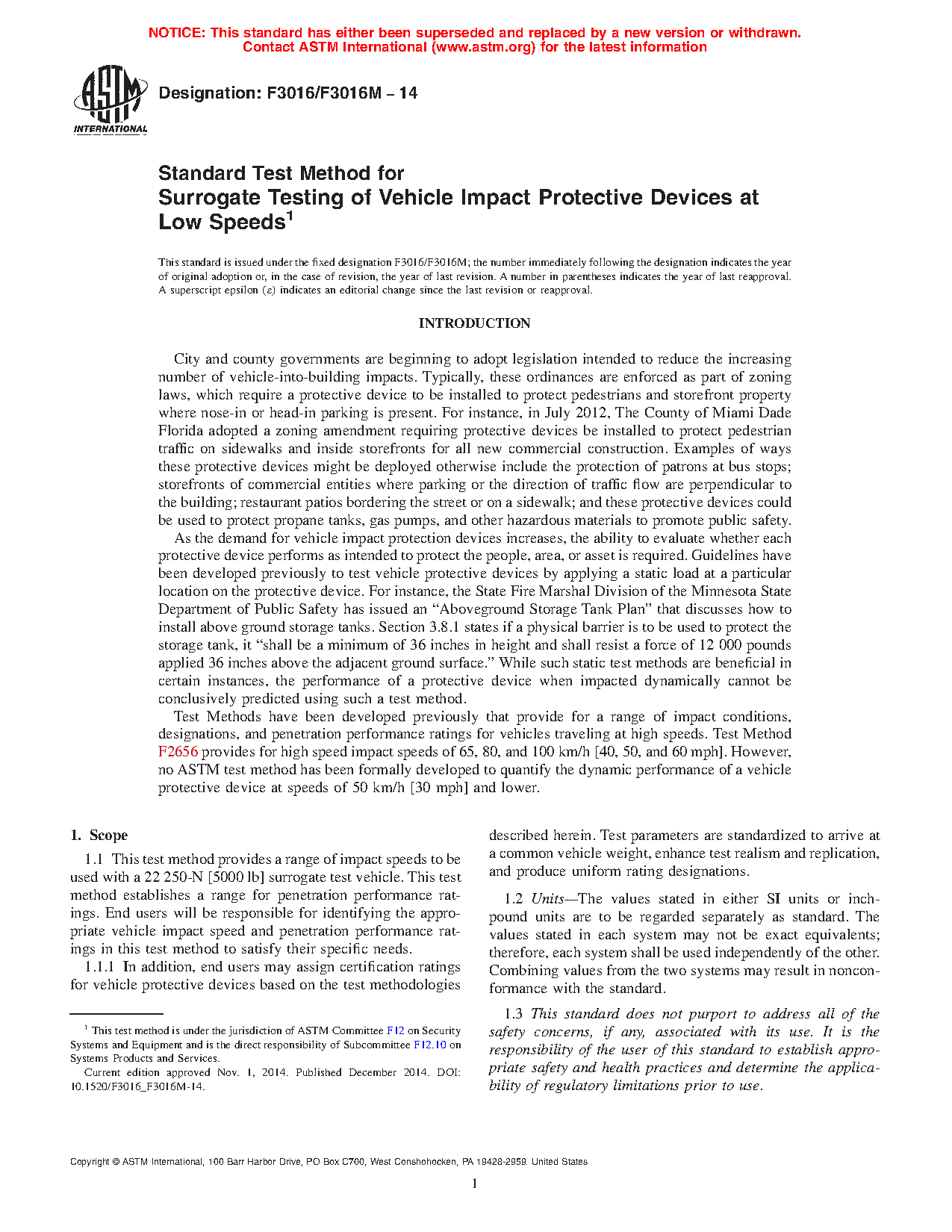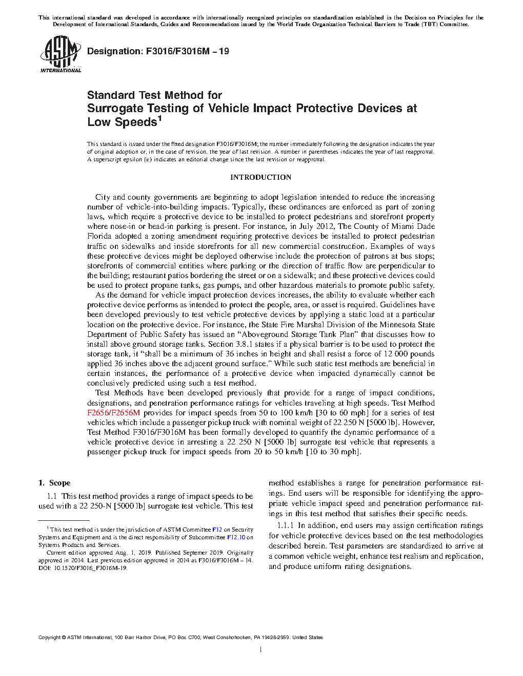 1.1.1 In addition, end users may assign certification ratings for vehicle protective devices based on the test methodologies described herein. Test parameters are standardized to arrive at a common vehicle weight, enhance test realism and replication, and produce uniform rating designations.