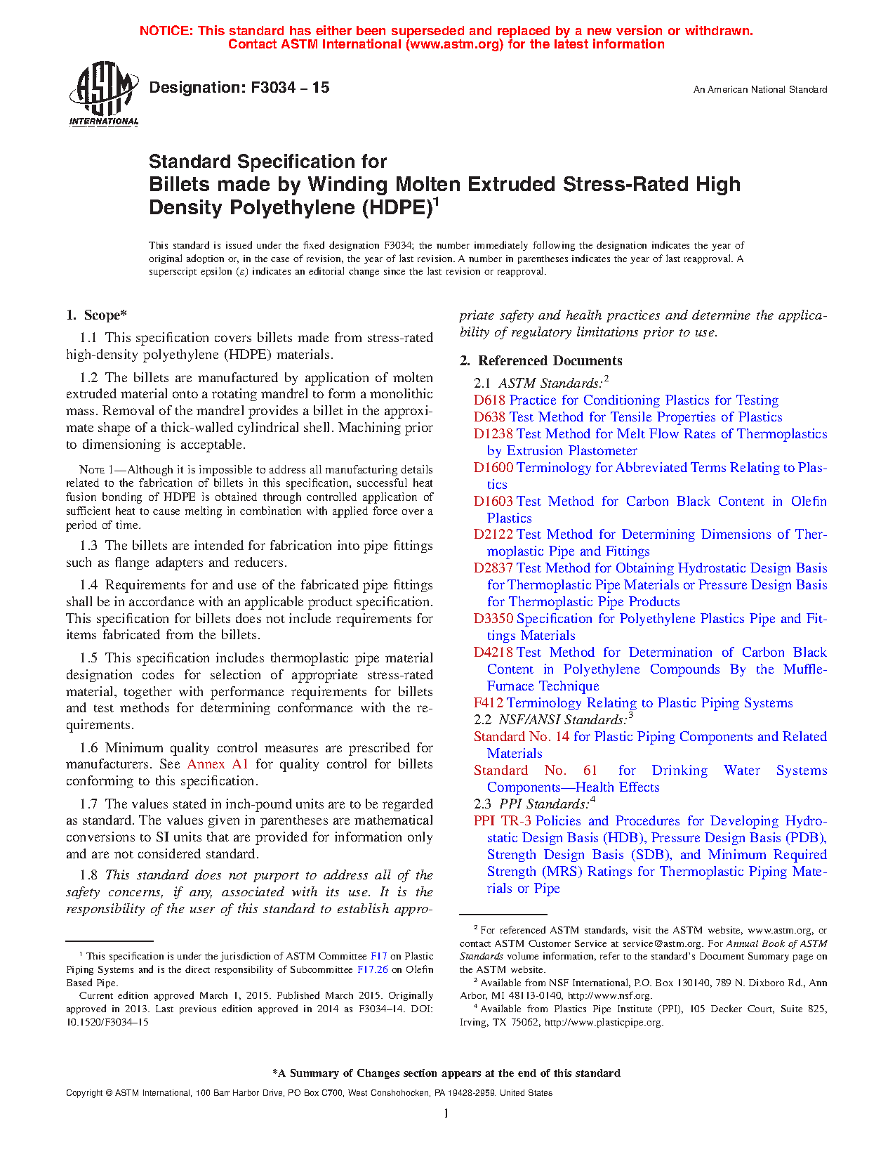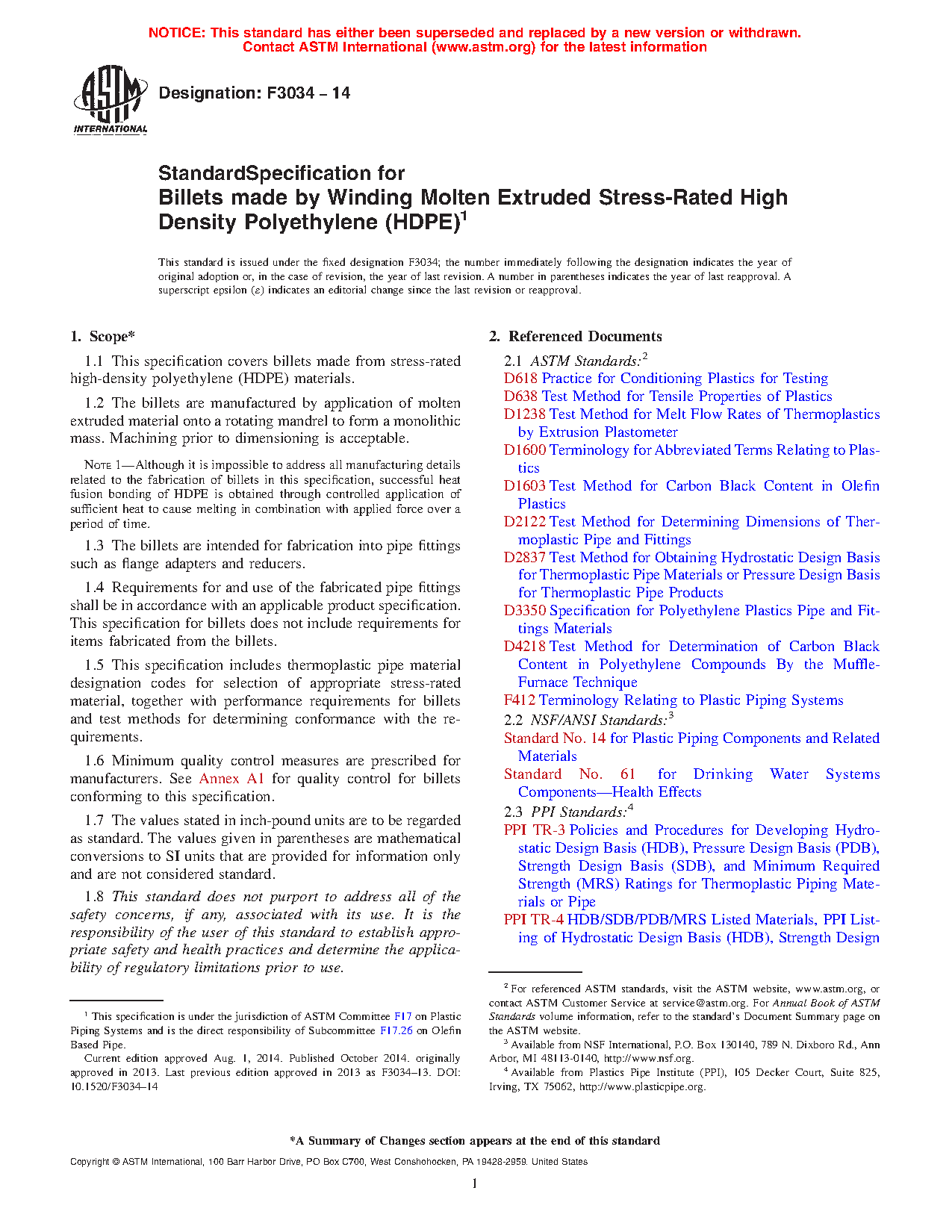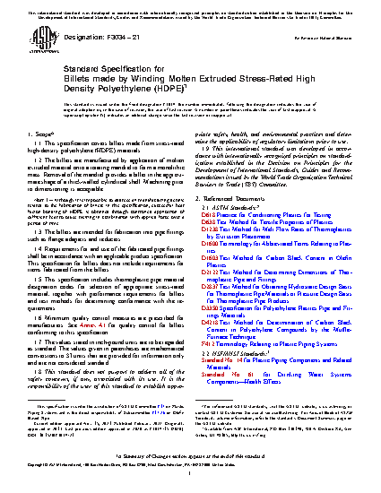 1.1 This specification covers billets made from stress-rated high-density polyethylene (HDPE) materials.
