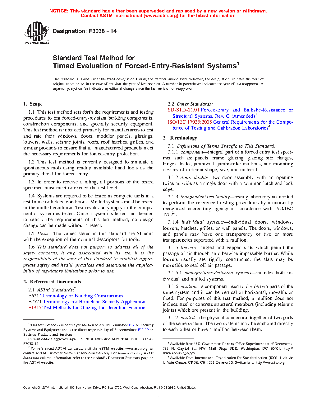 5.2 The procedures presented herein are based on field experience and are not intended to be used to establish or confirm the absolute prevention of forced entries.