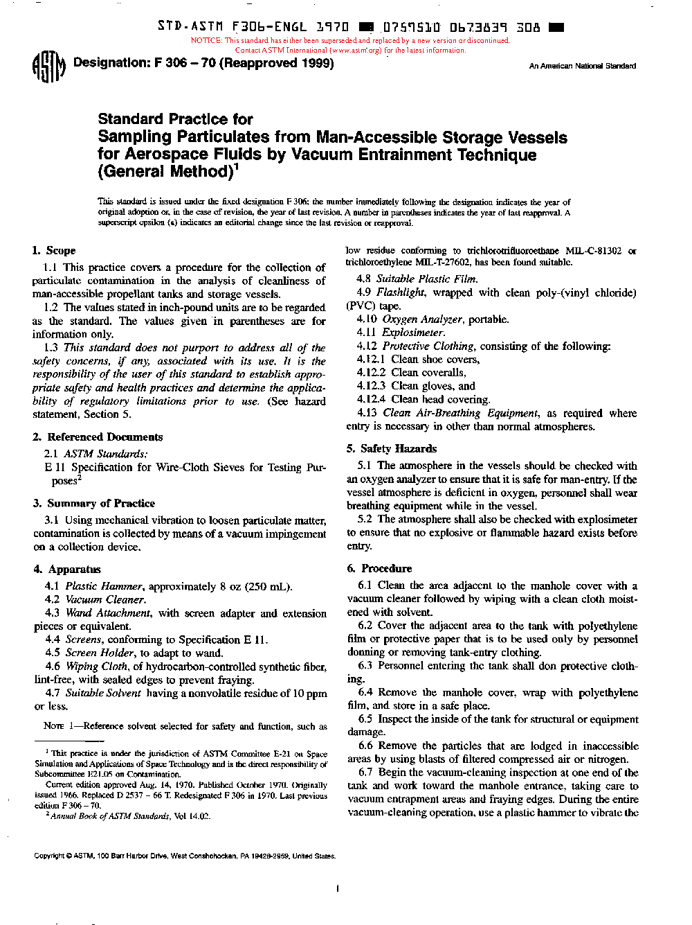 Practice for Sampling Particulates from Man-Accessible Storage Vessels for Aerospace Fluids by Vacuum Entrainment Technique (General Method) (Withdrawn 2000)