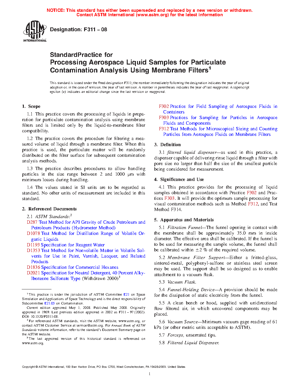 This practice provides for the processing of liquid samples obtained in accordance with Practice F 302