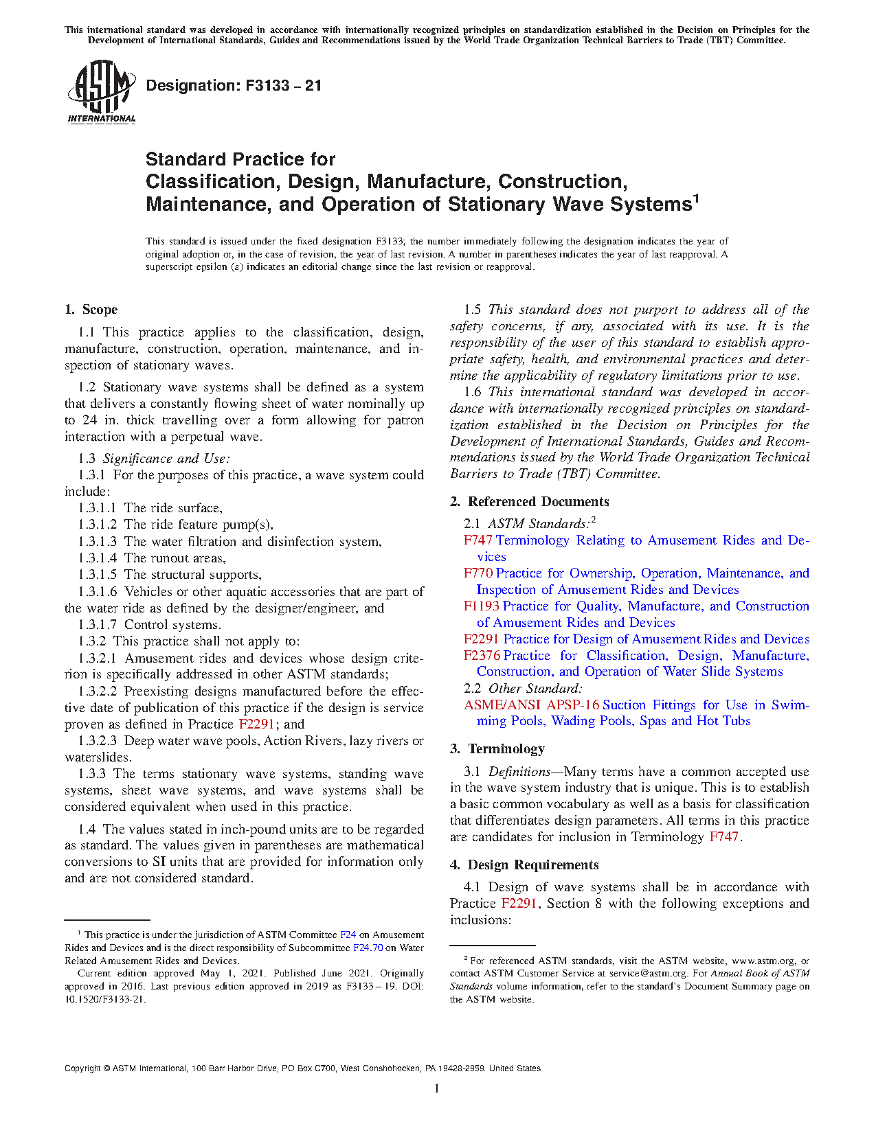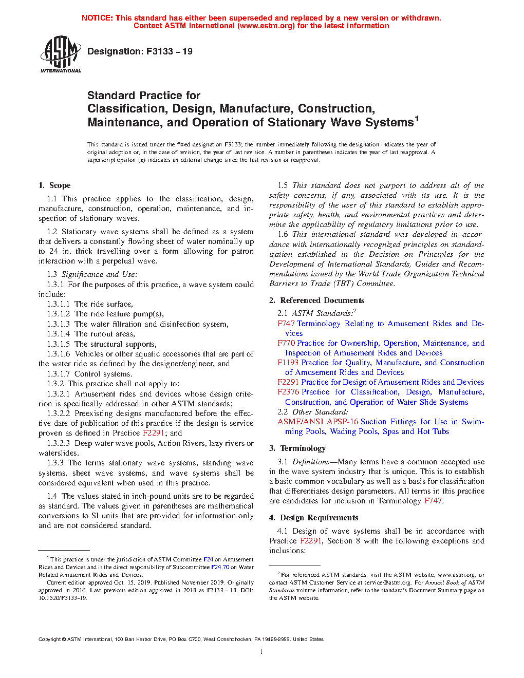 1.1 This practice applies to the classification, design, manufacture, construction, operation, maintenance, and inspection of stationary waves.