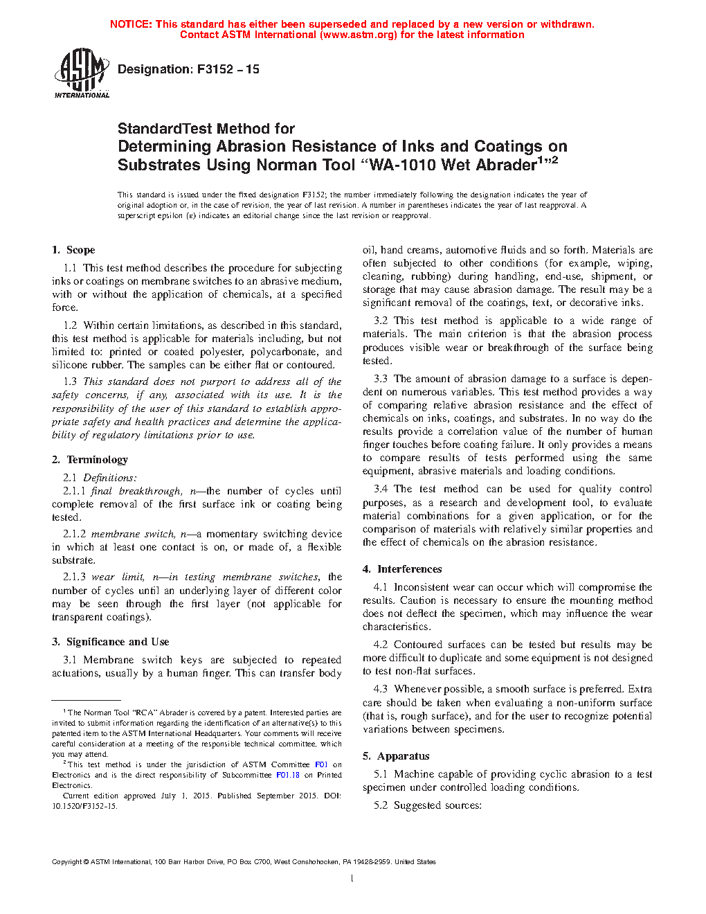 1.1 This test method describes the procedure for subjecting inks or coatings on substrates to an abrasive medium, with or without the application of chemicals, at a specified force.