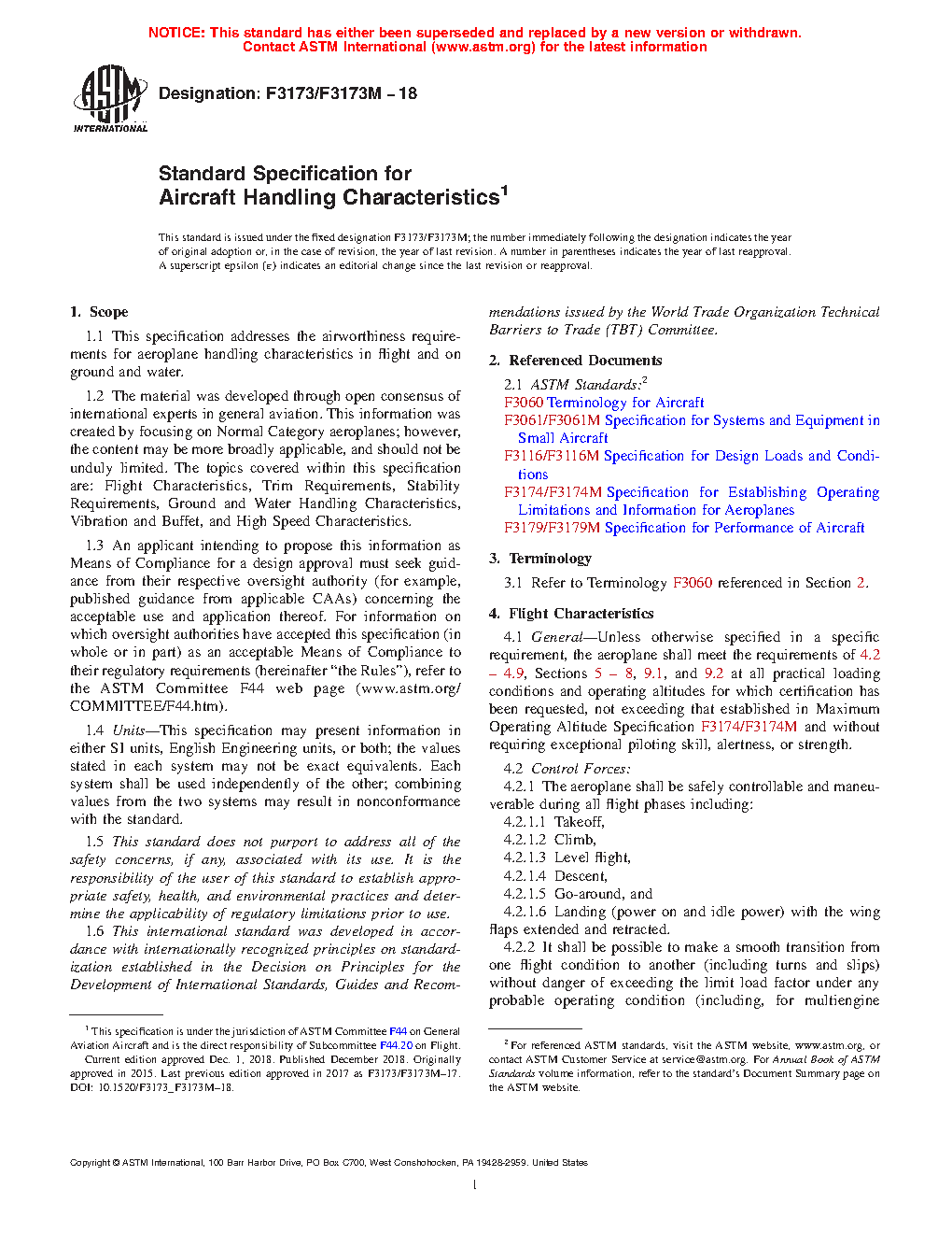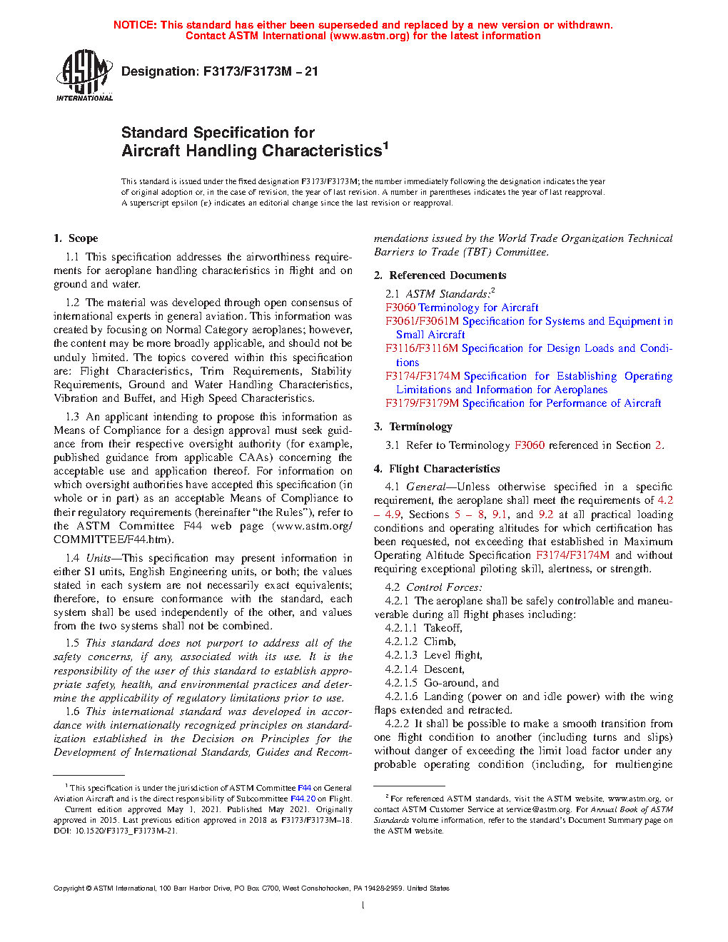 1.2 The material was developed through open consensus of international experts in general aviation. This information was created by focusing on Normal Category aeroplanes; however, the content may be more broadly applicable, and should not be unduly limited. The topics covered within this specification are: Flight Characteristics, Trim Requirements, Stability Requirements, Ground and Water Handling Characteristics, Vibration and Buffet, and High Speed Characteristics.