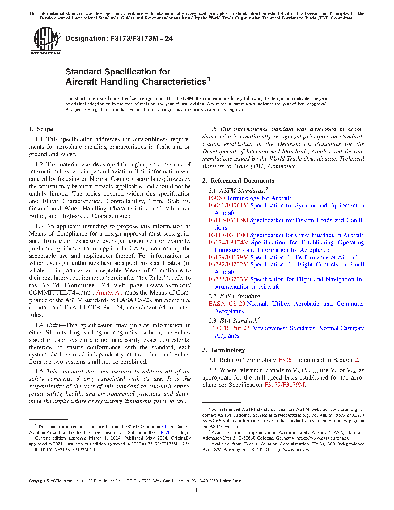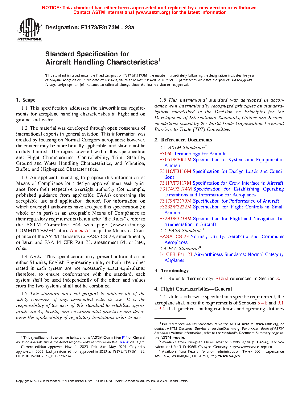 This specification covers airworthiness design criteria for aeroplane handling characteristics in flight and on ground and water. The applicant for a design approval shall seek the individual guidance of their respective civil aviation authority (CAA) body concerning the use of this specification as part of a certification plan.