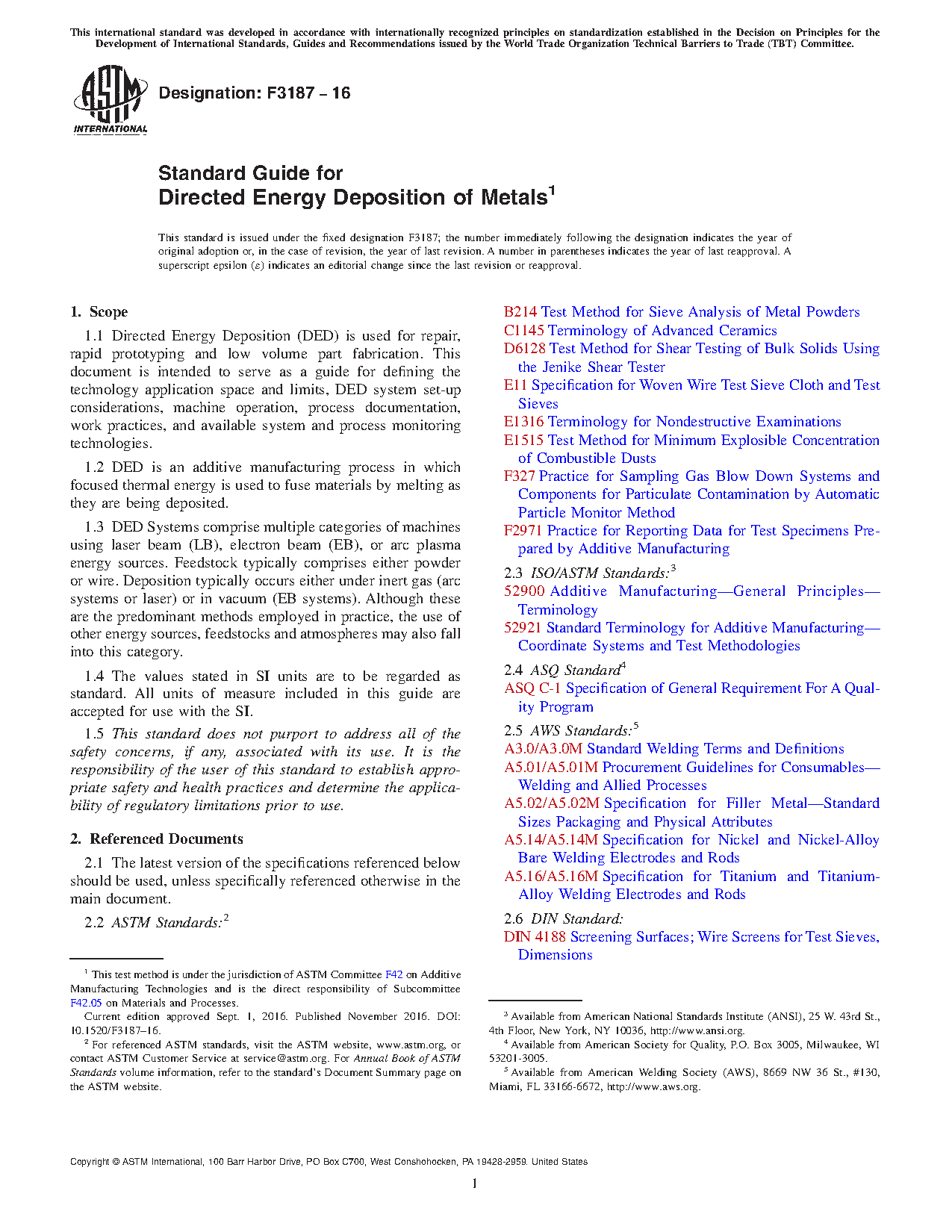 5.5 Fig. 1 gives a general guide as to the relative capabilities of the main DED processes compared to others currently used for metal additive manufacturing. The figure does not include all process selection criteria, and it is not intended to be used as a process selection method.
