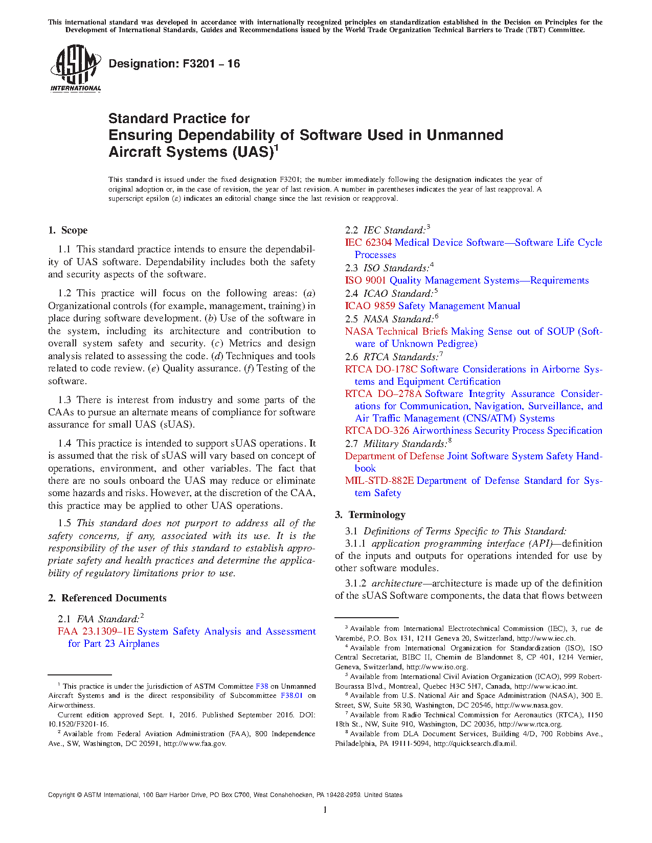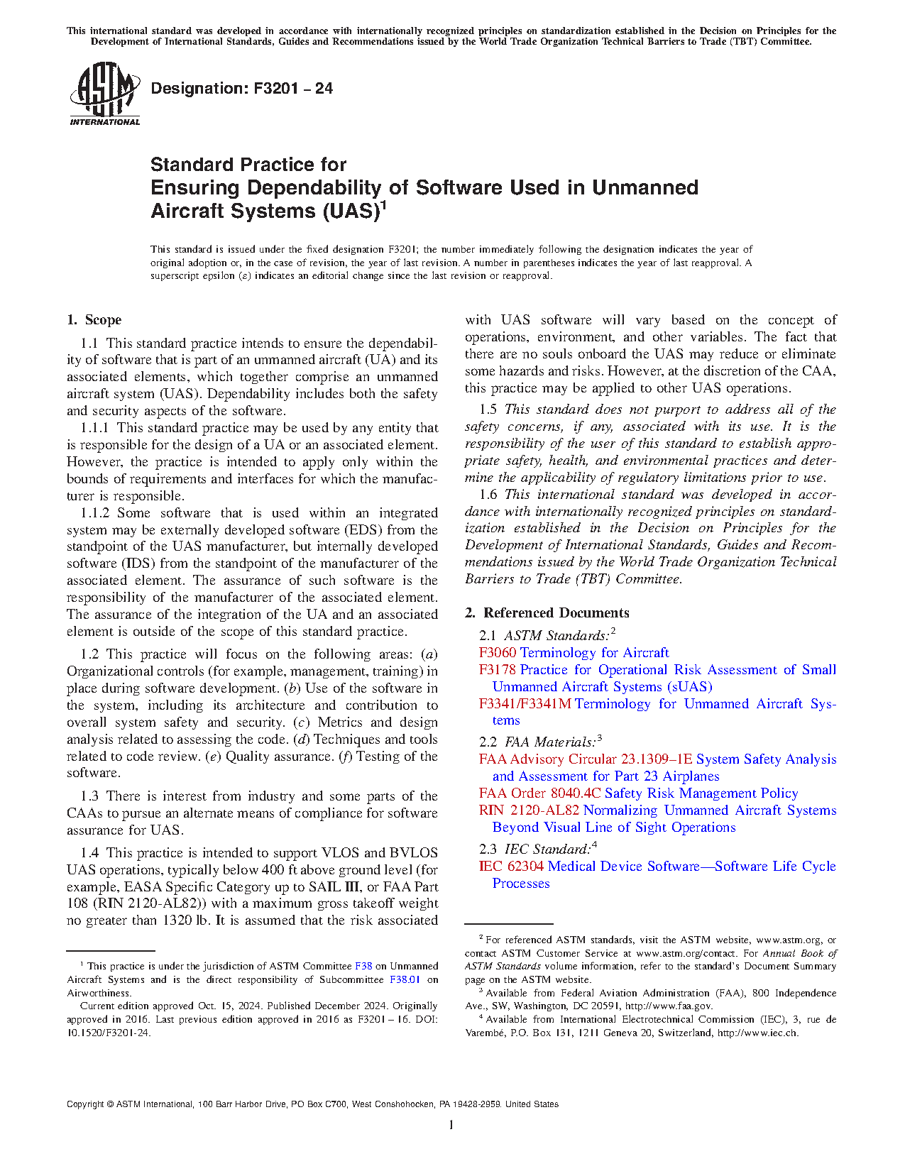 1.1 This standard practice intends to ensure the dependability of UAS software. Dependability includes both the safety and security aspects of the software.