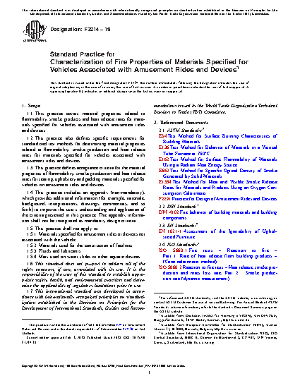 4.4 Appendix X1 provides non-mandatory guidance for conducting an analysis of fire scenarios associated with the operation of vehicles associated with amusement rides and devices. The conduction of a fire hazard analysis is not a requirement of this practice. The purpose of Appendix X1 is to provide manufacturers, owners, and operators with criteria and references for fire properties of materials used in vehicles either following construction or major modifications of an amusement ride or device.