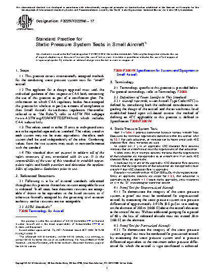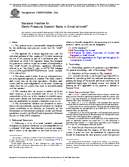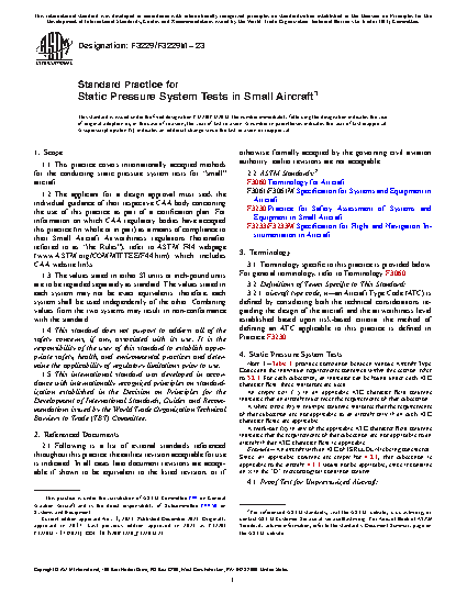1.1 This practice covers internationally accepted methods for the conducting static pressure system tests for “small” aircraft.