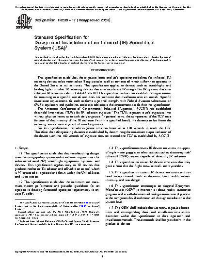 1.1 This specification establishes the manufacturing design, manufacturing quality system and installation requirements for airborne infrared (IR) searchlight equipment, systems, and devices. This specification applies only to IR devices that produce incoherent IR radiation and affixed to an aircraft which is N registered or operated and flown within the United States and its territories.
