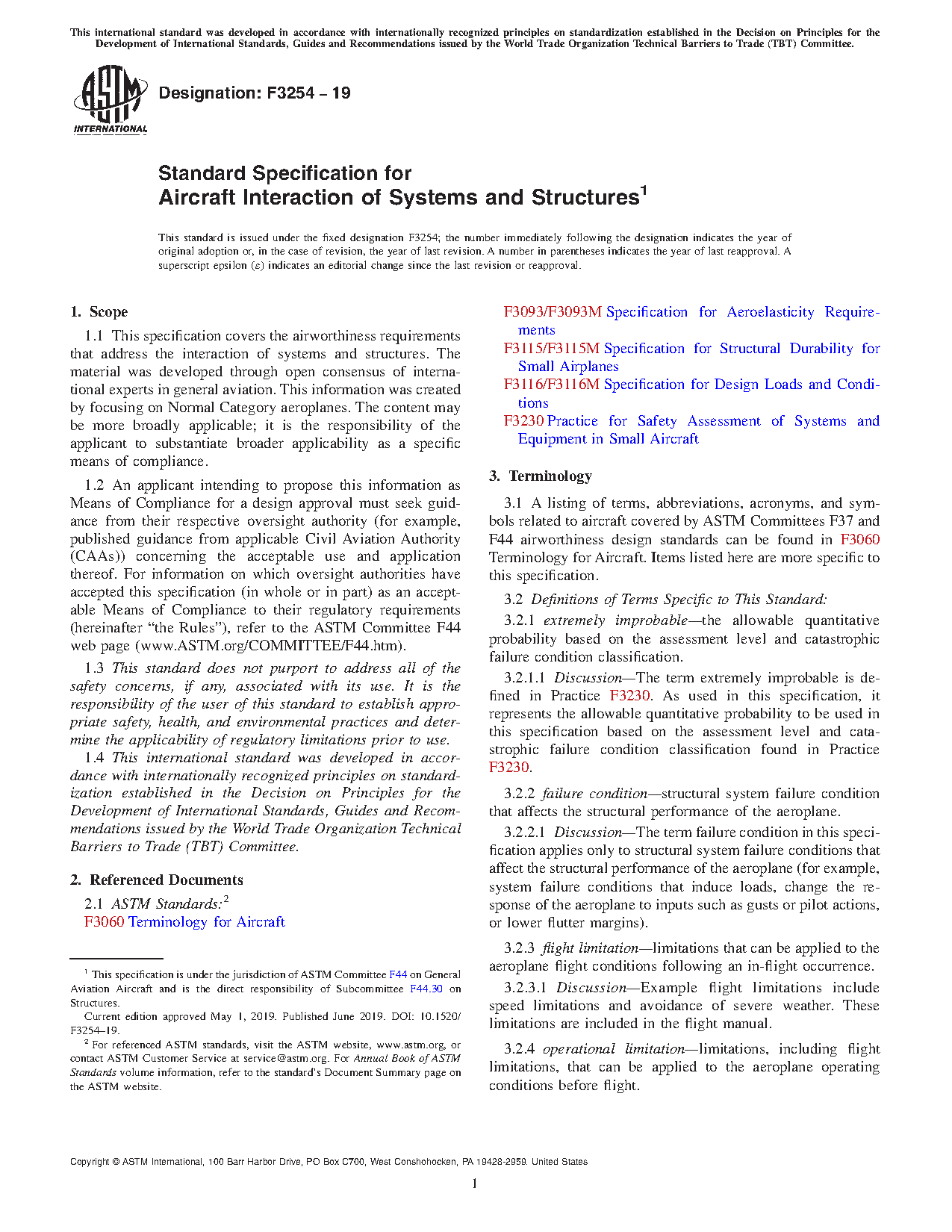 1.1 This specification covers the airworthiness requirements that address the interaction of systems and structures. The material was developed through open consensus of international experts in general aviation. This information was created by focusing on Normal Category aeroplanes. The content may be more broadly applicable; it is the responsibility of the applicant to substantiate broader applicability as a specific means of compliance.