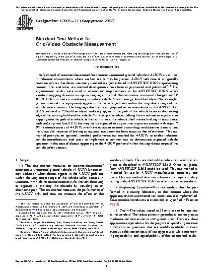 4.2 This test method can apply to A-UGVs for testing obstacle-sensing capabilities and automatic guided industrial vehicles in automatic mode of operation in non-restricted areas as described in ANSI/ITSDF B56.5.