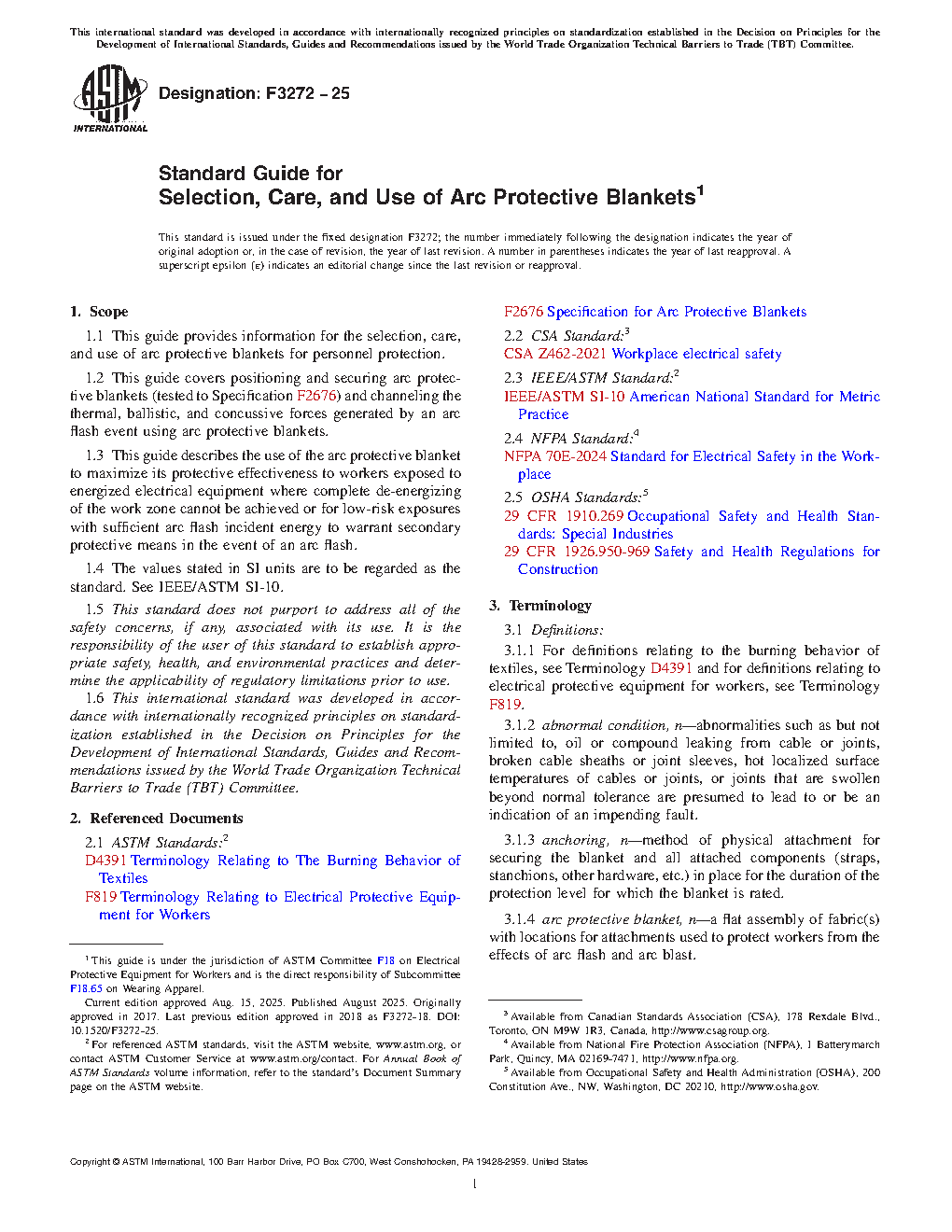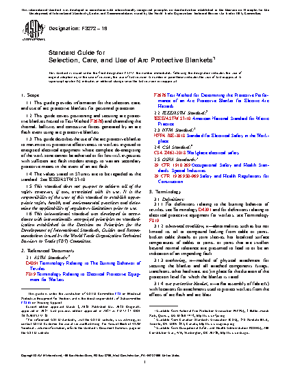 1.2 This guide covers positioning and securing arc protective blankets (tested to Test Method F2676) and channeling the thermal, ballistic, and concussive forces generated by an arc flash event using arc protective blankets.