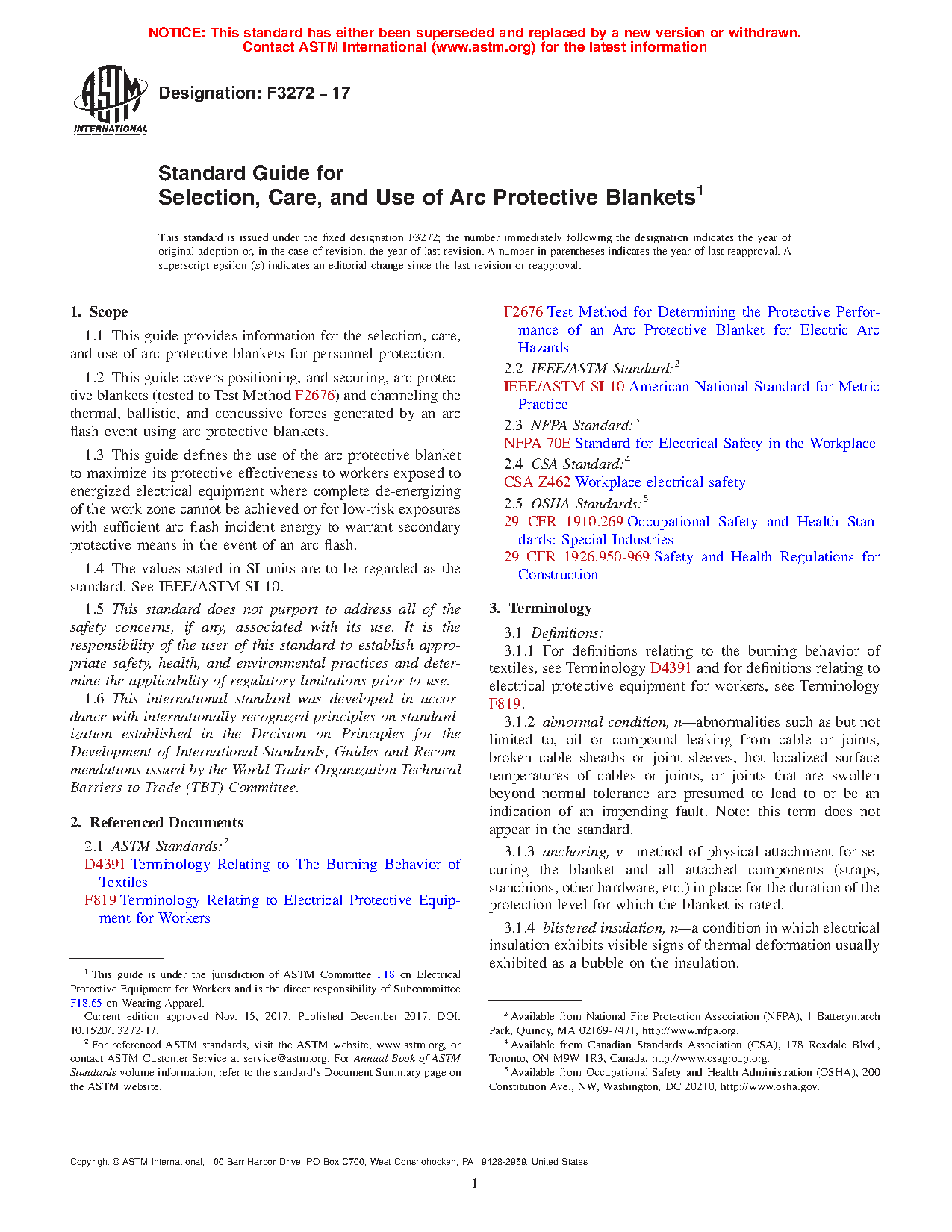 1.1 This guide provides information for the selection, care, and use of arc protective blankets for personnel protection.