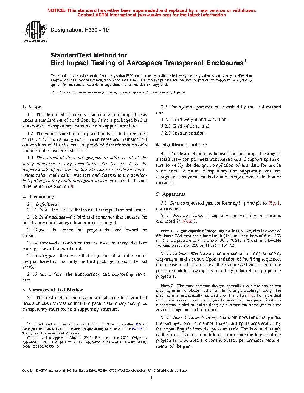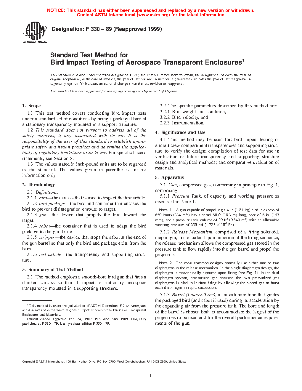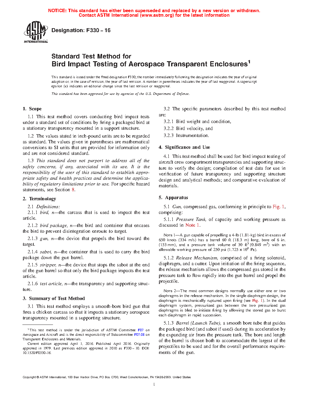 Standard Test Method for Bird Impact Testing of Aerospace Transparent Enclosures