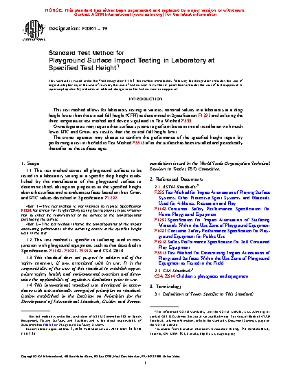 5.2 This test method is to be used as a reference for specifying the impact attenuation performance of playground surfaces and the height from which they are tested.