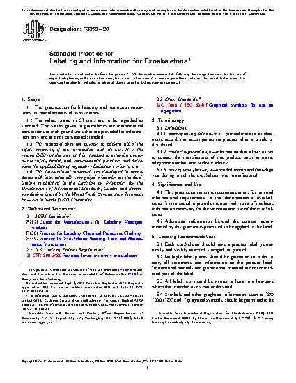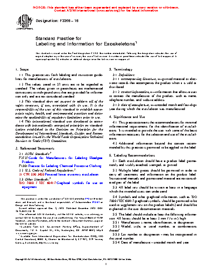 1.1 This practice sets forth labeling and instruction guidelines for manufacturers of exoskeletons.