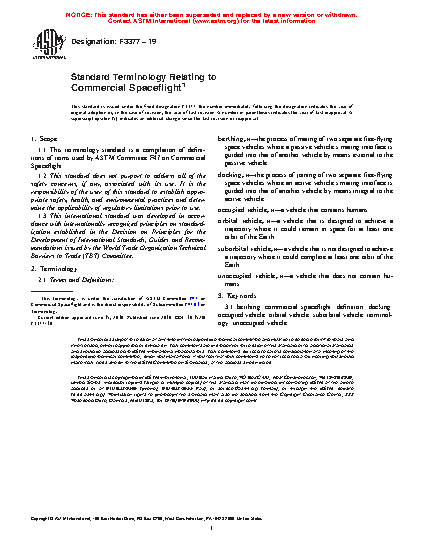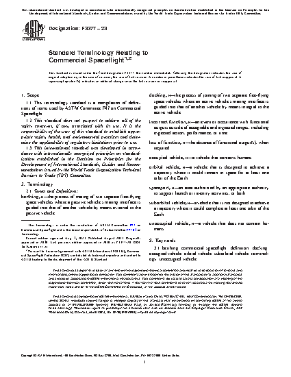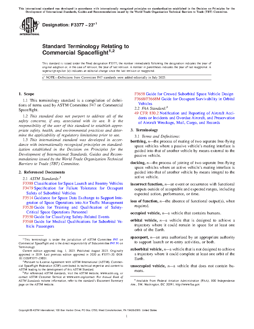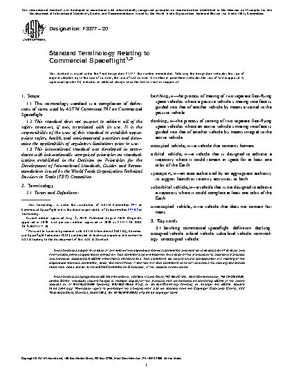 1.1 This terminology standard is a compilation of definitions of terms used by ASTM Committee F47 on Commercial Spaceflight.