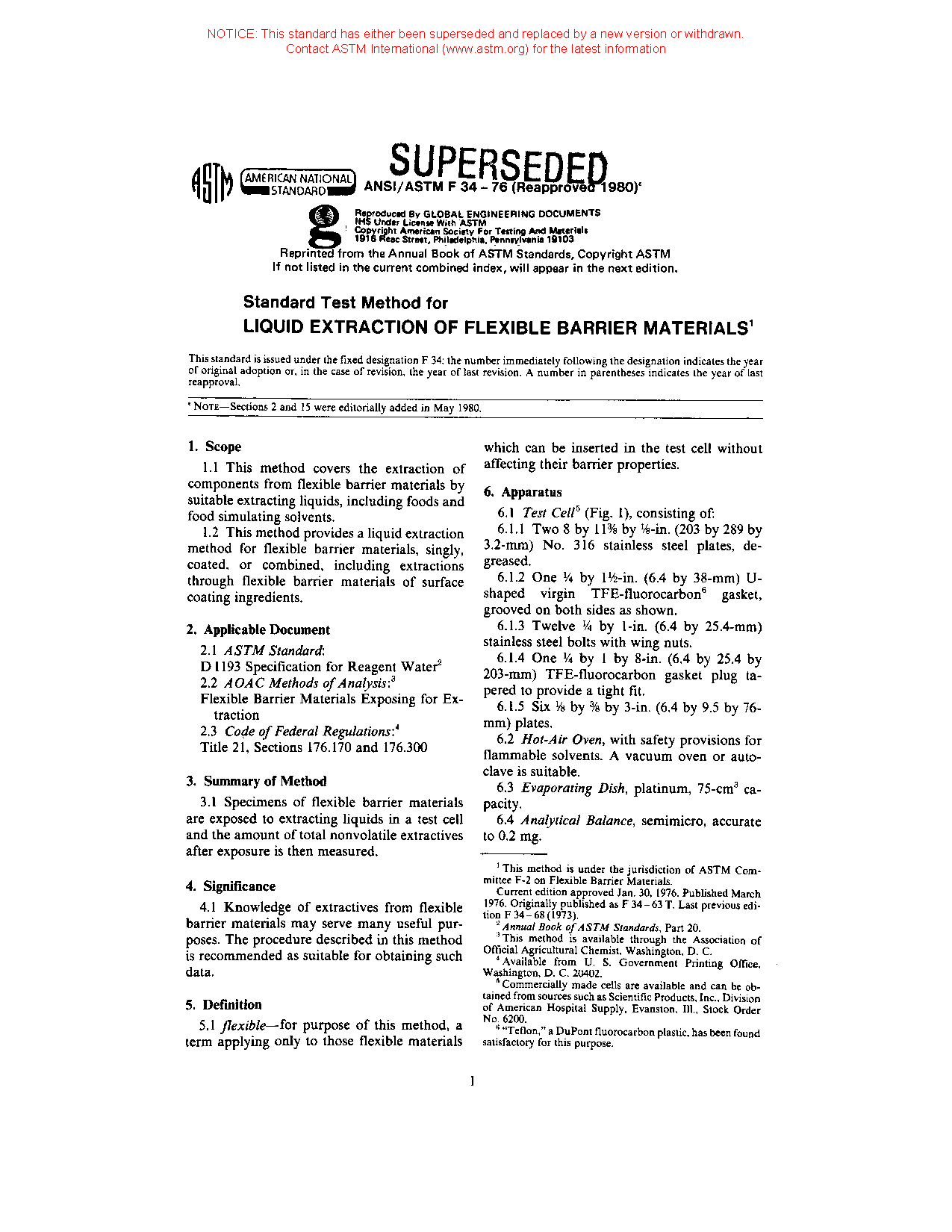 5.1 Knowledge of extractives from flexible barrier materials may serve many useful purposes. A test cell constructed as described in this practice may be used for obtaining such data. Another test cell has been found equivalent to the one described in this practice. See the appendix for the source of the alternate cell.