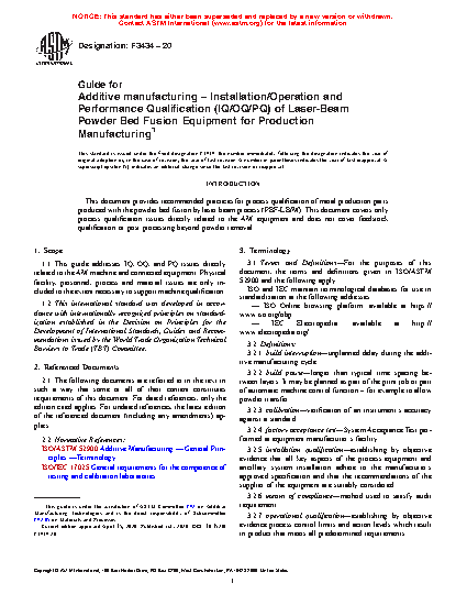 Guide for Additive manufacturing – Installation/Operation and Performance Qualification (IQ/OQ/PQ) of Laser-Beam Powder Bed Fusion Equipment for Production Manufacturing