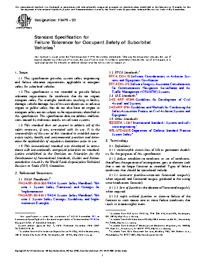 1.1 This specification provides system safety engineering and failure tolerance requirements applicable to occupant safety for suborbital vehicles.