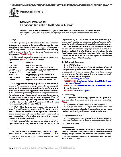 1.1 This practice provides methods for how Enhanced Indications are provided to the responsible crewmember when an applicant uses these indications in support of compliance with the requirements for Stall Characteristics, Stall Warning, and Spins applicable to Normal Category Aeroplanes, using Specification F3180/F3180M.