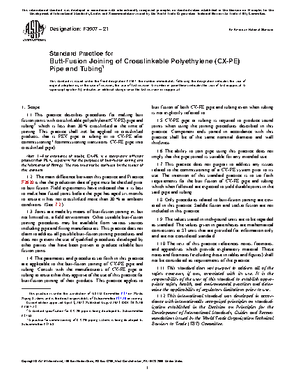 1.7 This practice does not purport to address any issues related to the commissioning of a CX-PE system prior to its use. The intention of this standard practice is to set forth requirements for the butt fusion of CX-PE pipe and tubing which when followed are expected to yield durable joints in the said pipe and tubing.