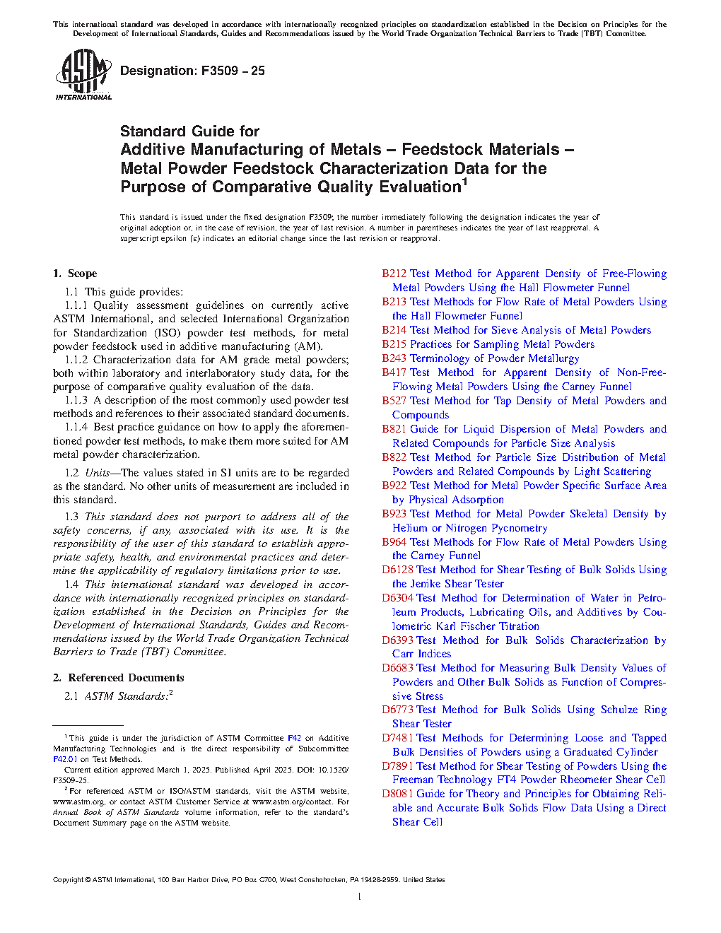 1.1.1 Quality assessment guidelines on currently active ASTM International, and selected International Organization for Standardization (ISO) powder test methods, for metal powder feedstock used in additive manufacturing (AM).