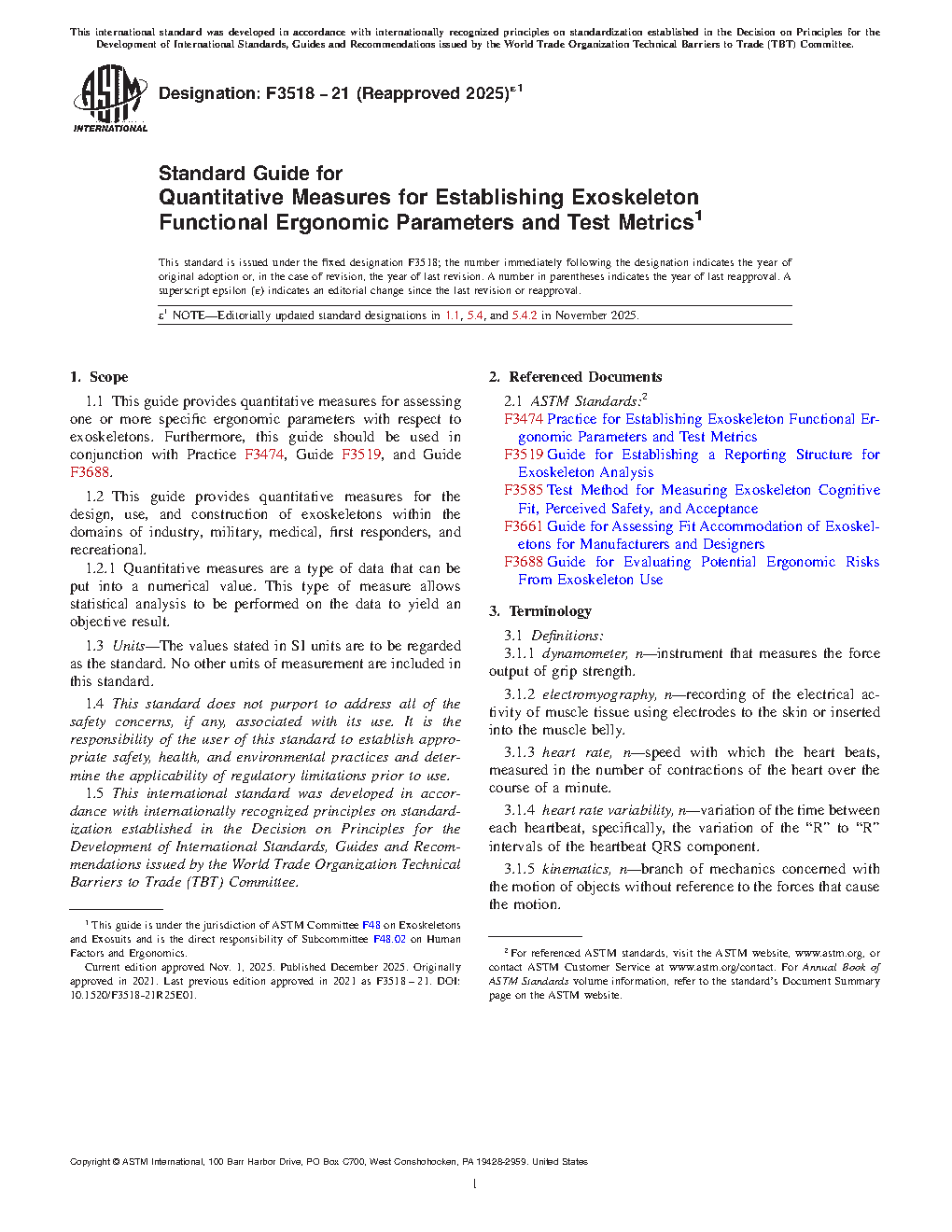 1.2 This guide provides quantitative measures for the design, use, and construction of exoskeletons within the domains of industry, military, medical, first responders, and recreational.