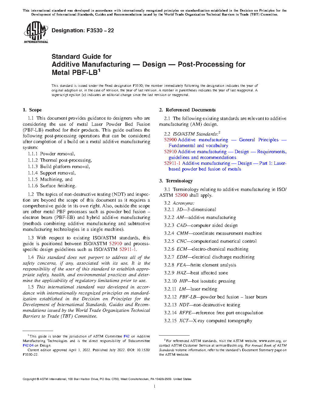 1.3 With respect to existing ISO/ASTM standards, this guide is positioned between ISO/ASTM 52910 and process-specific design guidelines such as ISO/ASTM 52911-1.