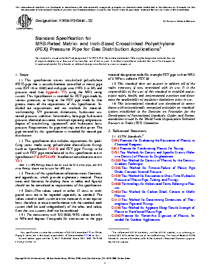 1.2 This specification also includes requirements for qualifying joints made using polyethylene electrofusion fittings (such as Specification F3373) and PEX pipe. Fittings to be used with PEX pipe manufactured to this specification are in Specification F2829/F2829M. Installation considerations are in X3.2.