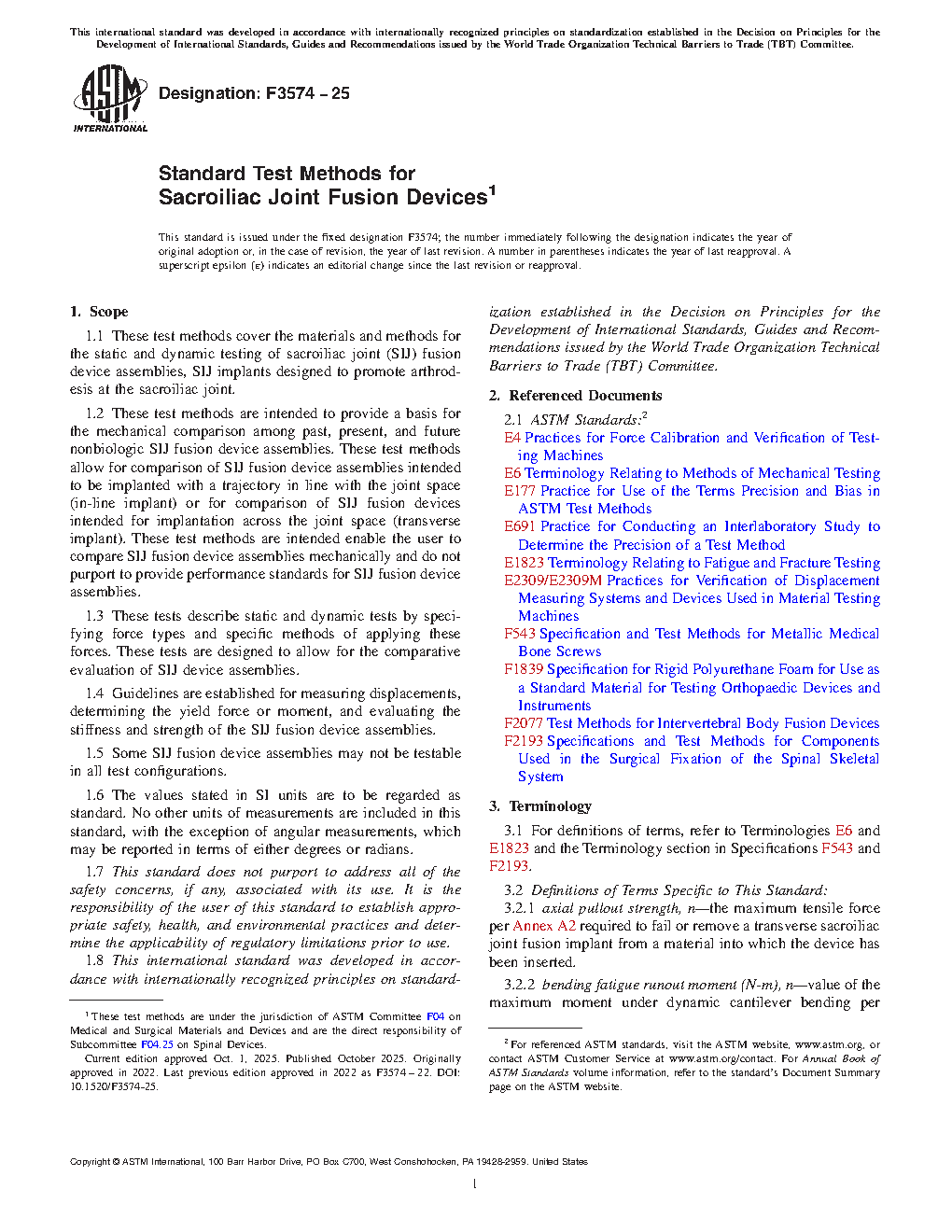 1.2 These test methods are intended to provide a basis for the mechanical comparison among past, present, and future nonbiologic SIJ fusion device assemblies. These test methods allow for comparison of SIJ fusion device assemblies intended to be implanted with a trajectory in line with the joint space (in-line implant) or for comparison of SIJ fusion devices intended for implantation across the joint space (transverse implant). These test methods are intended enable the user to compare SIJ fusion device assemblies mechanically and do not purport to provide performance standards for SIJ fusion device assemblies.