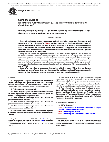 1.1 The purpose of this guide is to address the fundamental subject knowledge, task performance, and task knowledge activities and functions for unmanned aircraft system professionals to be titled unmanned aircraft system technician.