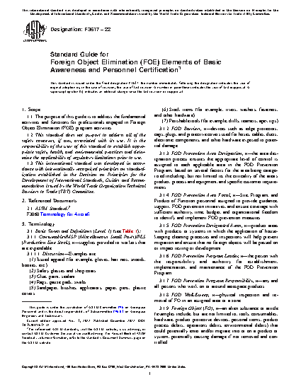 1.1 The purpose of this guide is to address the fundamental activities and functions for professionals engaged in Foreign Object Elimination (FOE) program activities.