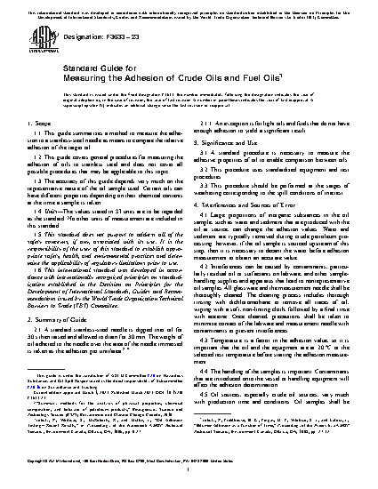 1.1 This guide summarizes a method to measure the adhesion to a stainless-steel needle as means to compare the relative adhesion of the target oil.