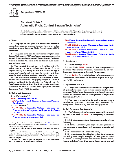 1.1 The purpose of this guide is to address the fundamental subject knowledge activities and functions for avionics professionals to be titled Automatic Flight Control System (AFCS) Technician.