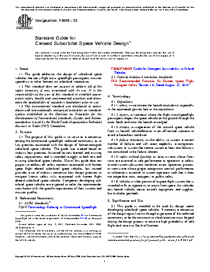 1.1 This guide addresses the design of suborbital space vehicles that carry flight crew, spaceflight participants, mission specialists or other humans on suborbital trajectories.