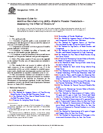 1.1.3 Guidelines to evaluate the effect of humidity and moisture on AM metallic powder feedstocks,