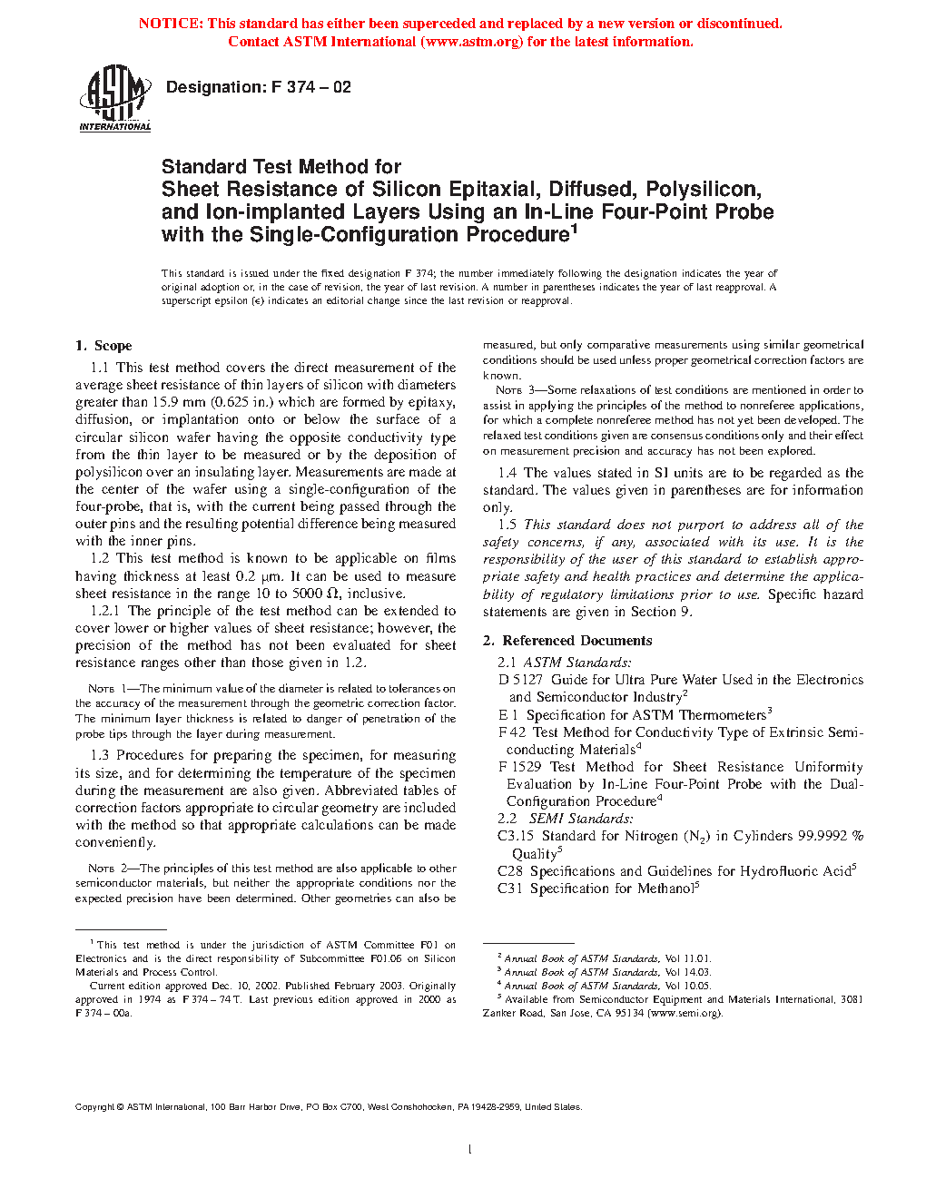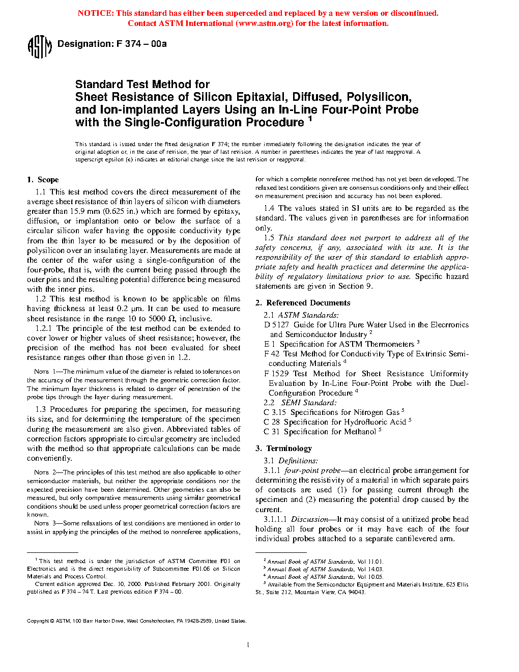 1.2 This test method is known to be applicable on films having thickness at least 0.2 µm. It can be used to measure sheet resistance in the range 10 to 5000 [omega], inclusive.