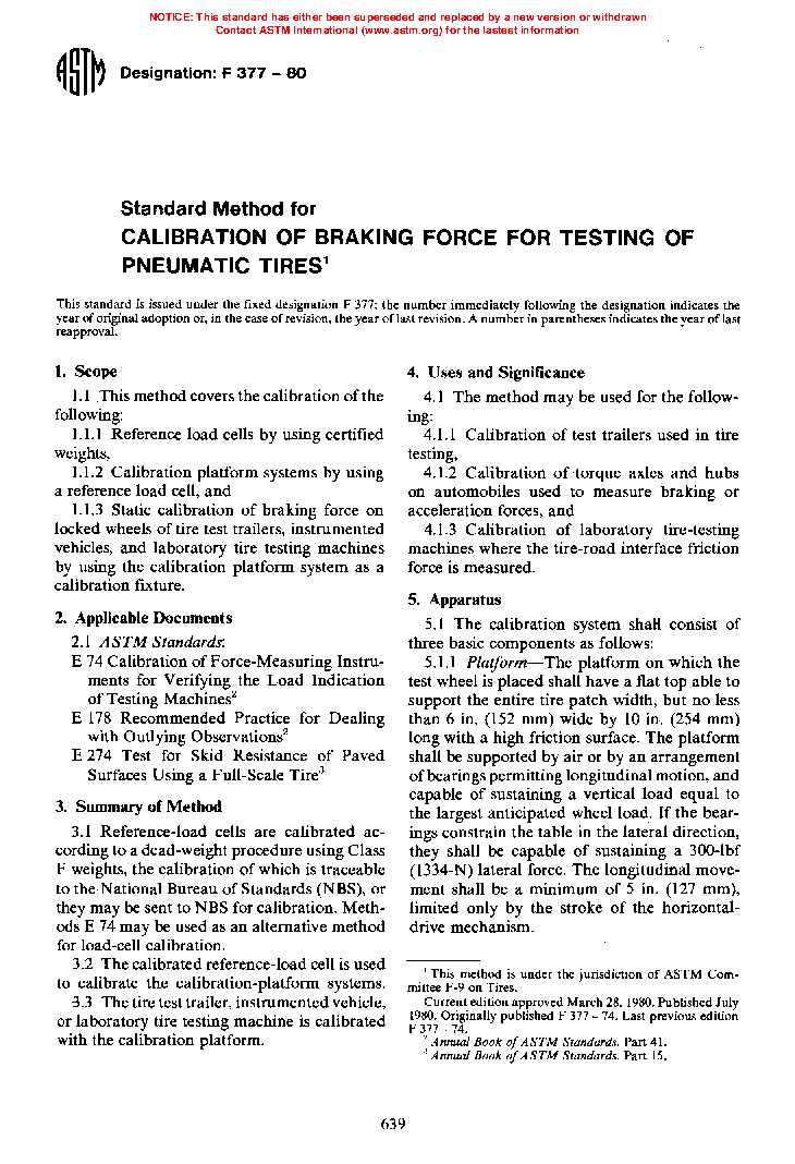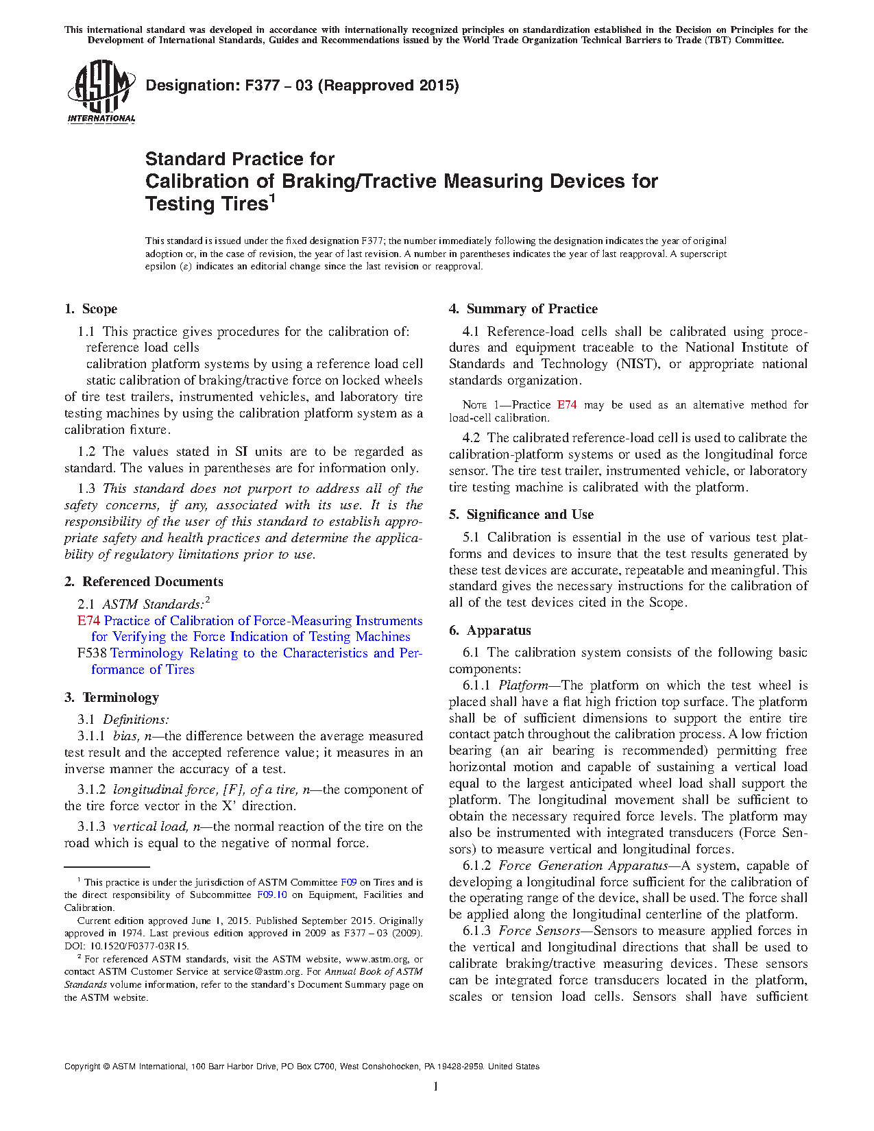 reference load cellscalibration platform systems by using a reference load cellstatic calibration of braking/tractive force on locked wheels of tire test trailers, instrumented vehicles, and laboratory tire testing machines by using the calibration platform system as a calibration fixture.1.2 The values stated in SI units are to be regarded as standard. The values in parentheses are for information only.