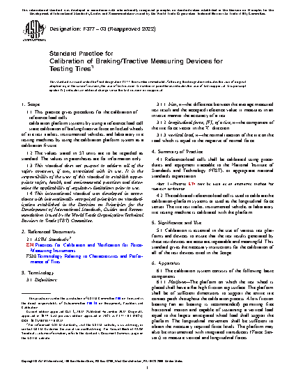 Calibration is essential in the use of various test platforms and devices to insure that the test results generated by these test devices are accurate, repeatable and meaningful. This standard gives the necessary instructions for the calibration of all of the test devices cited in the Scope.