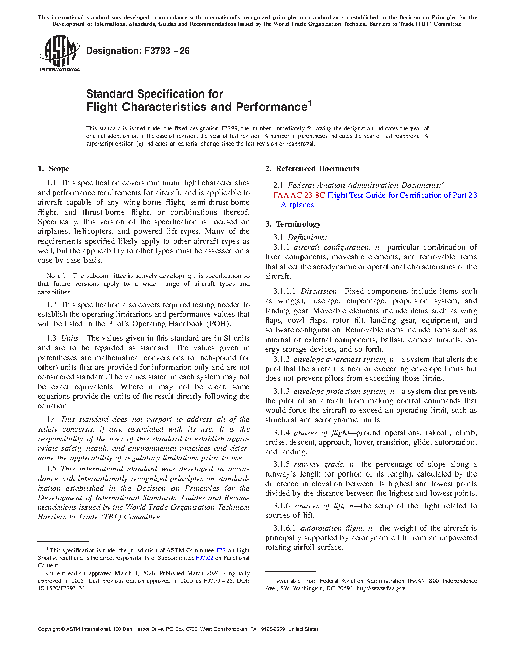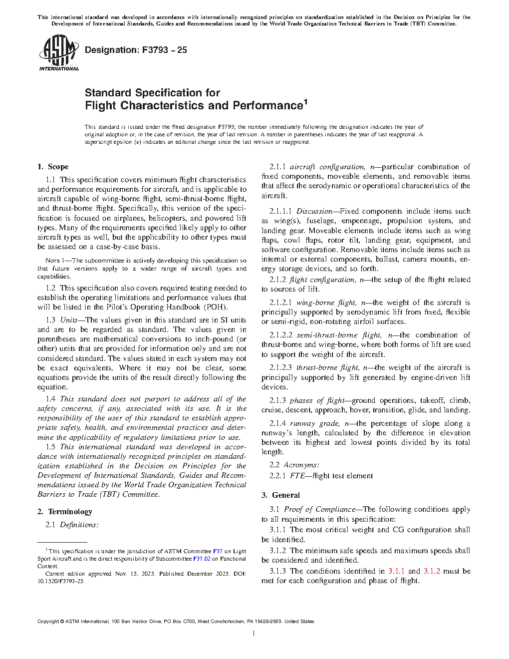1.1Â This specification covers minimum flight characteristics and performance requirements for aircraft, and is applicable to aircraft capable of any wing-borne flight, semi-thrust-borne flight, and thrust-borne flight, or combinations thereof. Specifically, this version of the specification is focused on airplanes, helicopters, and powered lift types. Many of the requirements specified likely apply to other aircraft types as well, but the applicability to other types must be assessed on a case-by-case basis.