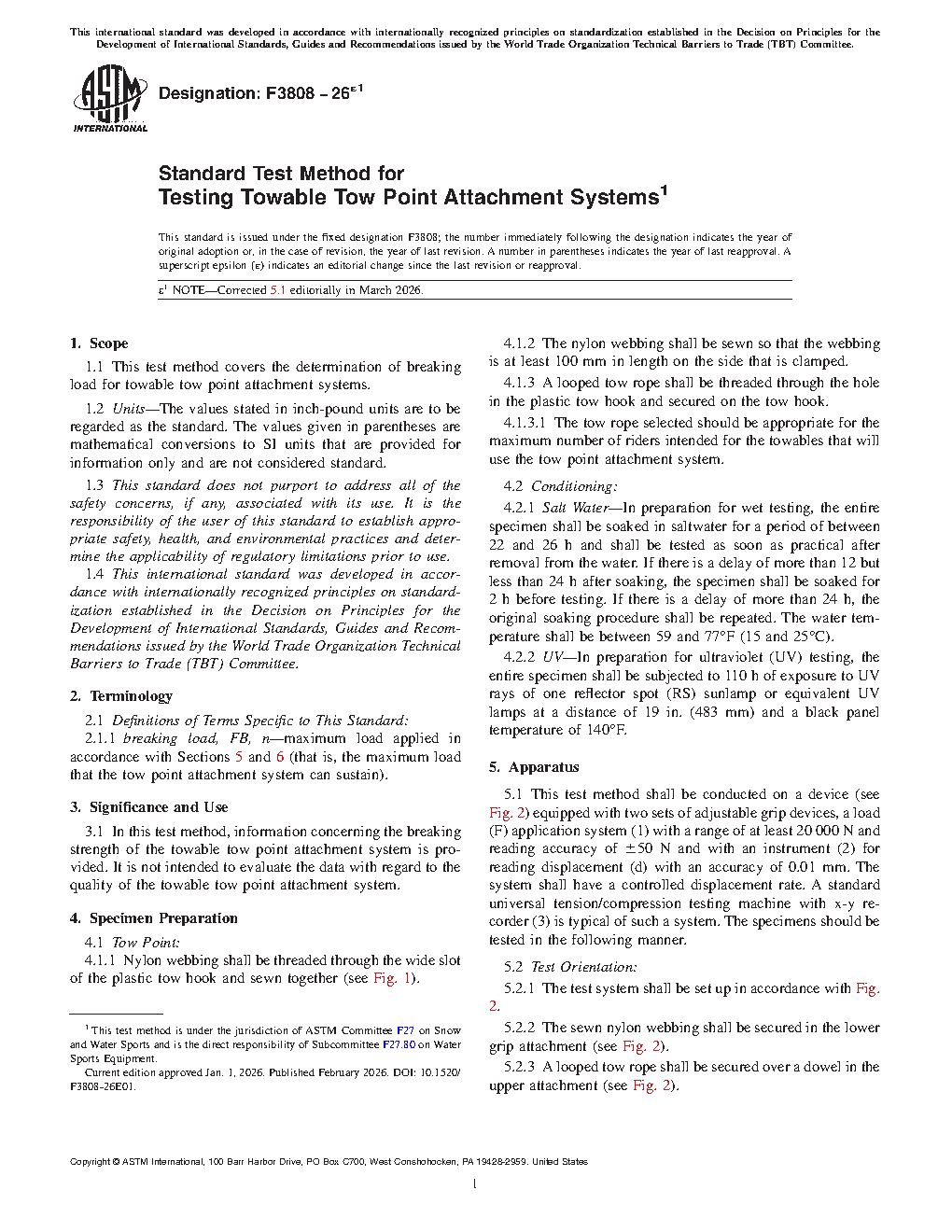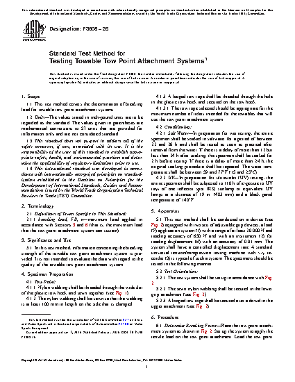 3.1 In this test method, information concerning the breaking strength of the towable tow point attachment system is provided. It is not intended to evaluate the data with regard to the quality of the towable tow point attachment system.