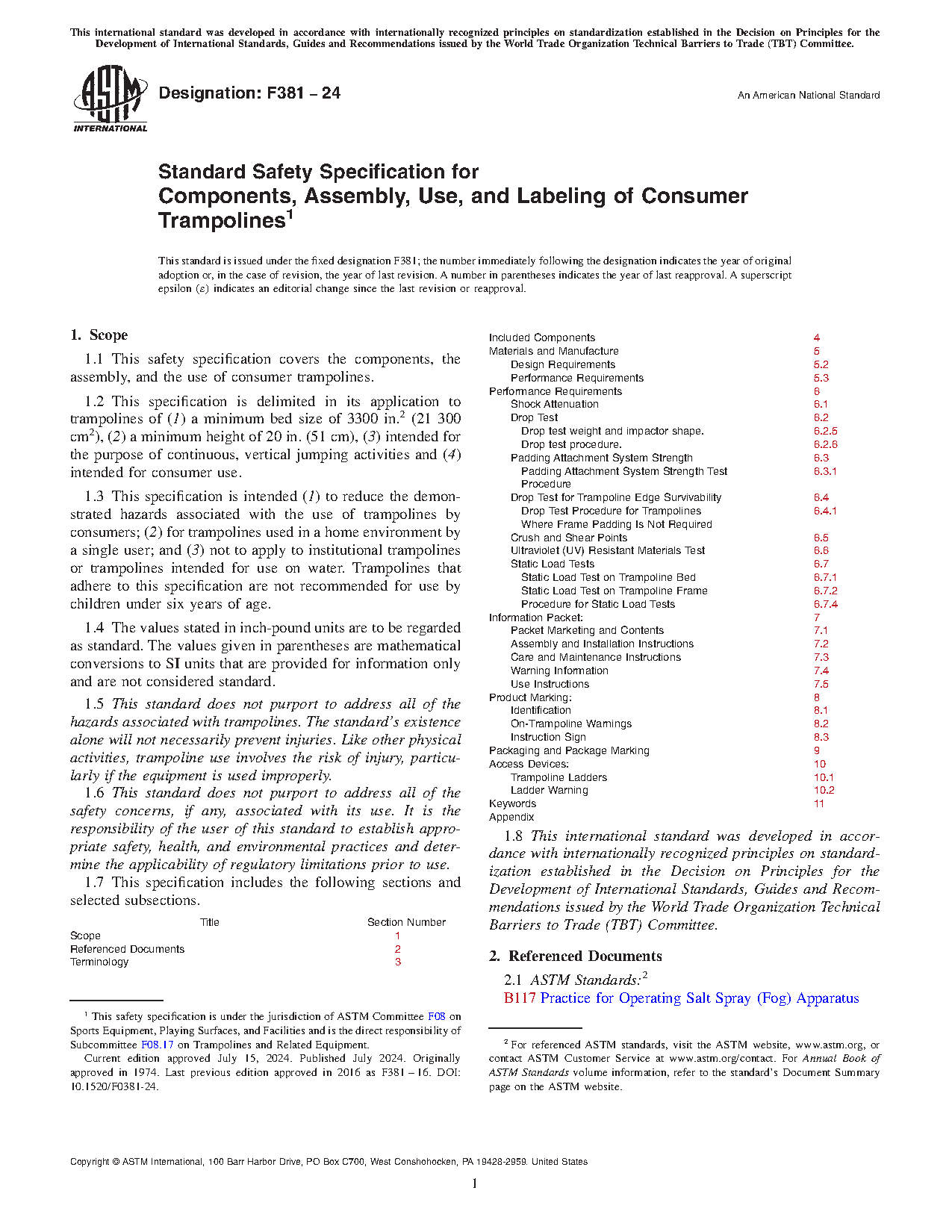 1.1 This safety specification covers the components, the assembly, and the use of consumer trampolines.