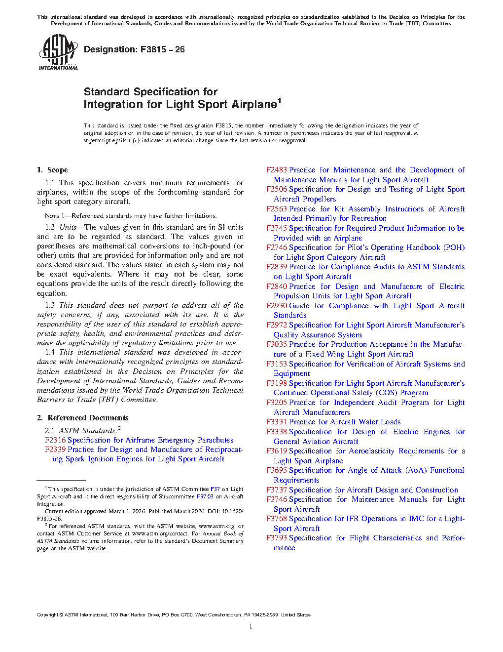 1.1 This speci?cation covers minimum requirements for airplanes, within the scope of the forthcoming standard for light sport category aircraft.