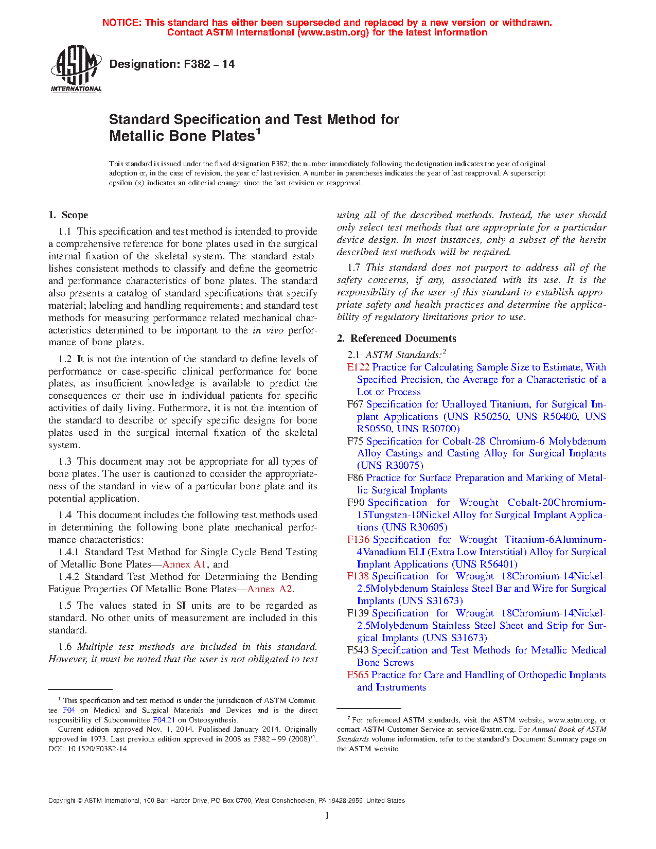 1.2 It is not the intention of the standard to define levels of performance or case-specific clinical performance for bone plates, as insufficient knowledge is available to predict the consequences or their use in individual patients for specific activities of daily living. Futhermore, it is not the intention of the standard to describe or specify specific designs for bone plates used in the surgical internal fixation of the skeletal system.