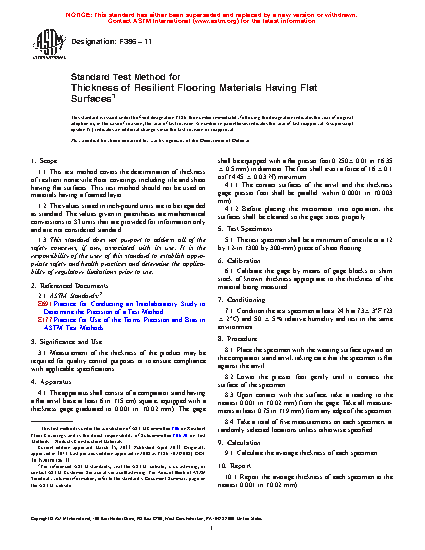 Standard Test Method for Thickness of Resilient Flooring Materials Having Flat Surfaces