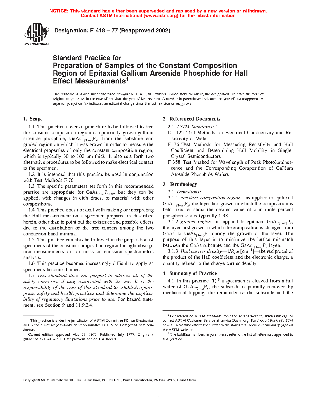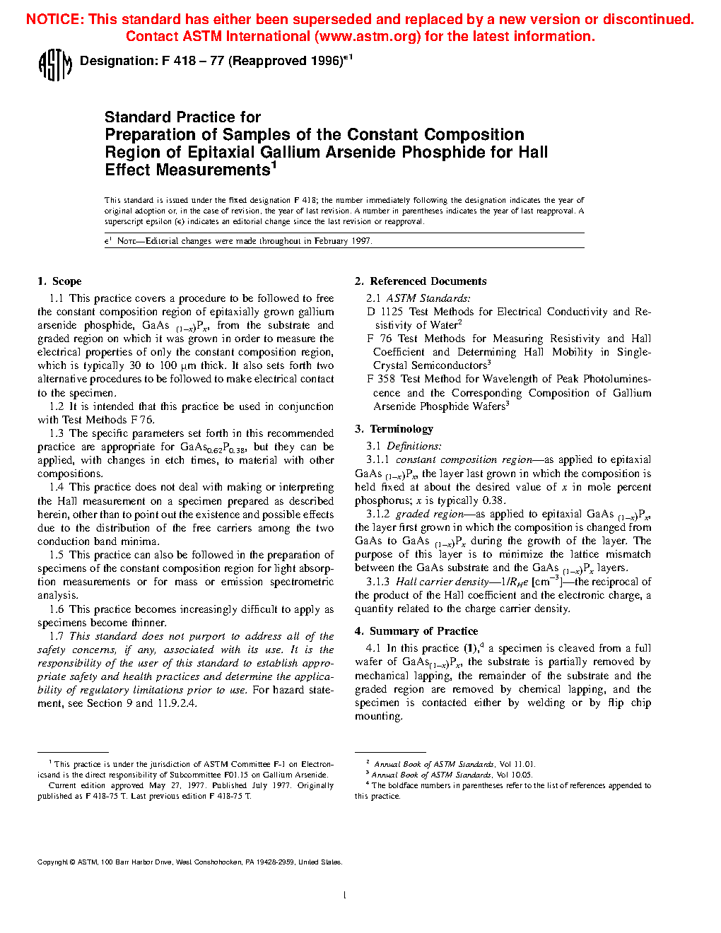 1.1 This practice covers a procedure to be followed to free the constant composition region of epitaxially grown gallium arsenide phosphide, GaAs(1x)Px, from the substrate and graded region on which it was grown in order to measure the electrical properties of only the constant composition region, which is typically 30 to 100 m thick. It also sets forth two alternative procedures to be followed to make electrical contact to the specimen.